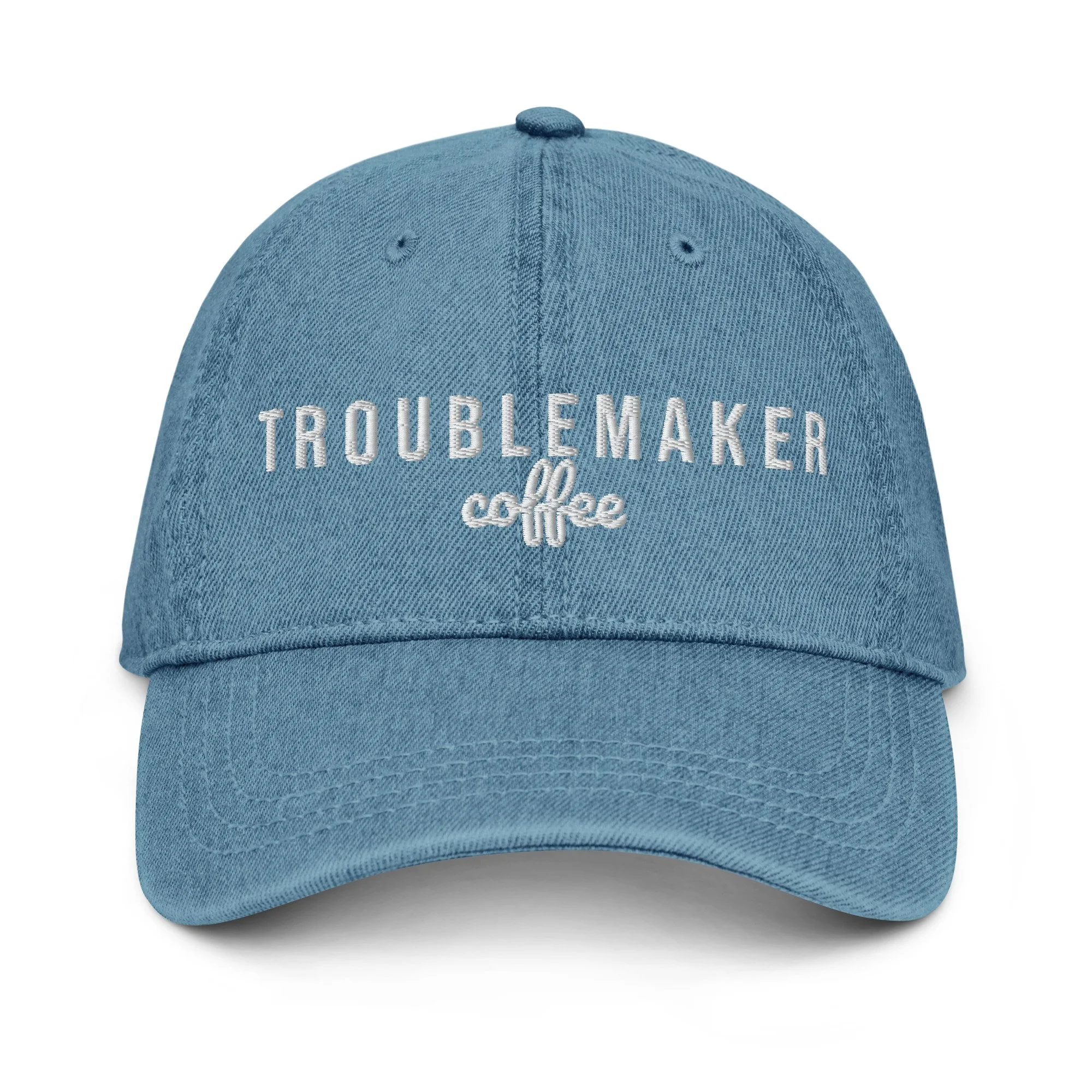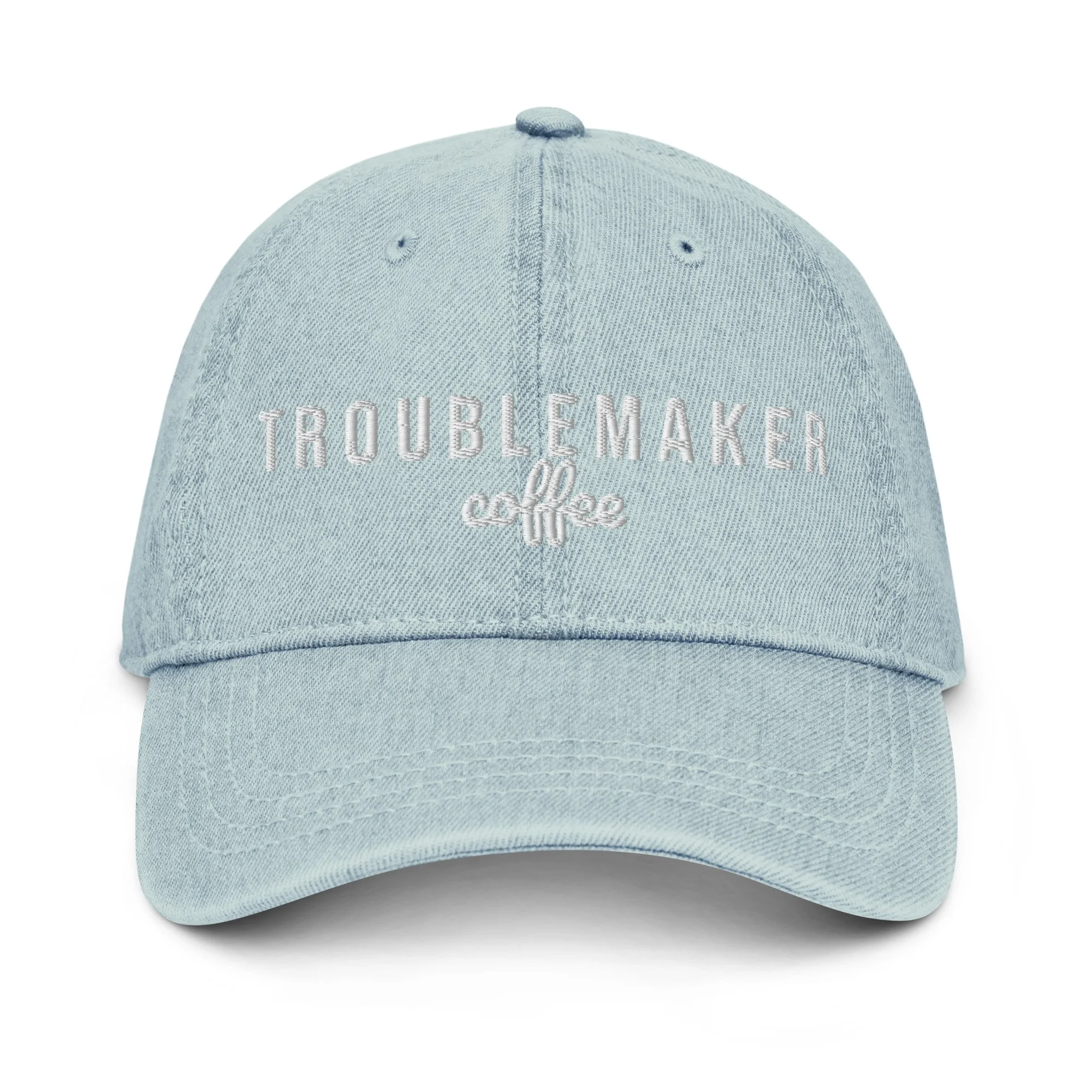 STORE › Denim Troublemaker Hat Image 1 of 18 Image 2 of 18 Image 3 of 18 Image 4 of 18 Image 5 of 18 Image 6 of 18 Image 7 of 18 Image 8 of 18 Image 9 of 18 Image 10 of 18 Image 11 of 18 Image 12 of 18 Image 13 of 18 Image 14 of 18 Image 15 of 18 Image 16 of 18 Image 17 of 18 Image 18 of 18 Denim Troublemaker Hat $25.00 Made out of 100% cotton, the 6-panel cap offers a light feel, while the adjustable strap ensures a solid and comfortable fit. • 100% cotton • 6-panel unstructured cap with a low profile • Soft crown • 6 sewn eyelets • 4 rows of visible stitching on the visor • Adjustable strap • Head circumference: 21.65″–25.19″ (55 cm–64 cm) Color: Black Blue Light Blue Add To Cart Added! Made out of 100% cotton, the 6-panel cap offers a light feel, while the adjustable strap ensures a solid and comfortable fit. • 100% cotton • 6-panel unstructured cap with a low profile • Soft crown • 6 sewn eyelets • 4 rows of visible stitching on the visor • Adjustable strap • Head circumference: 21.65″–25.19″ (55 cm–64 cm)