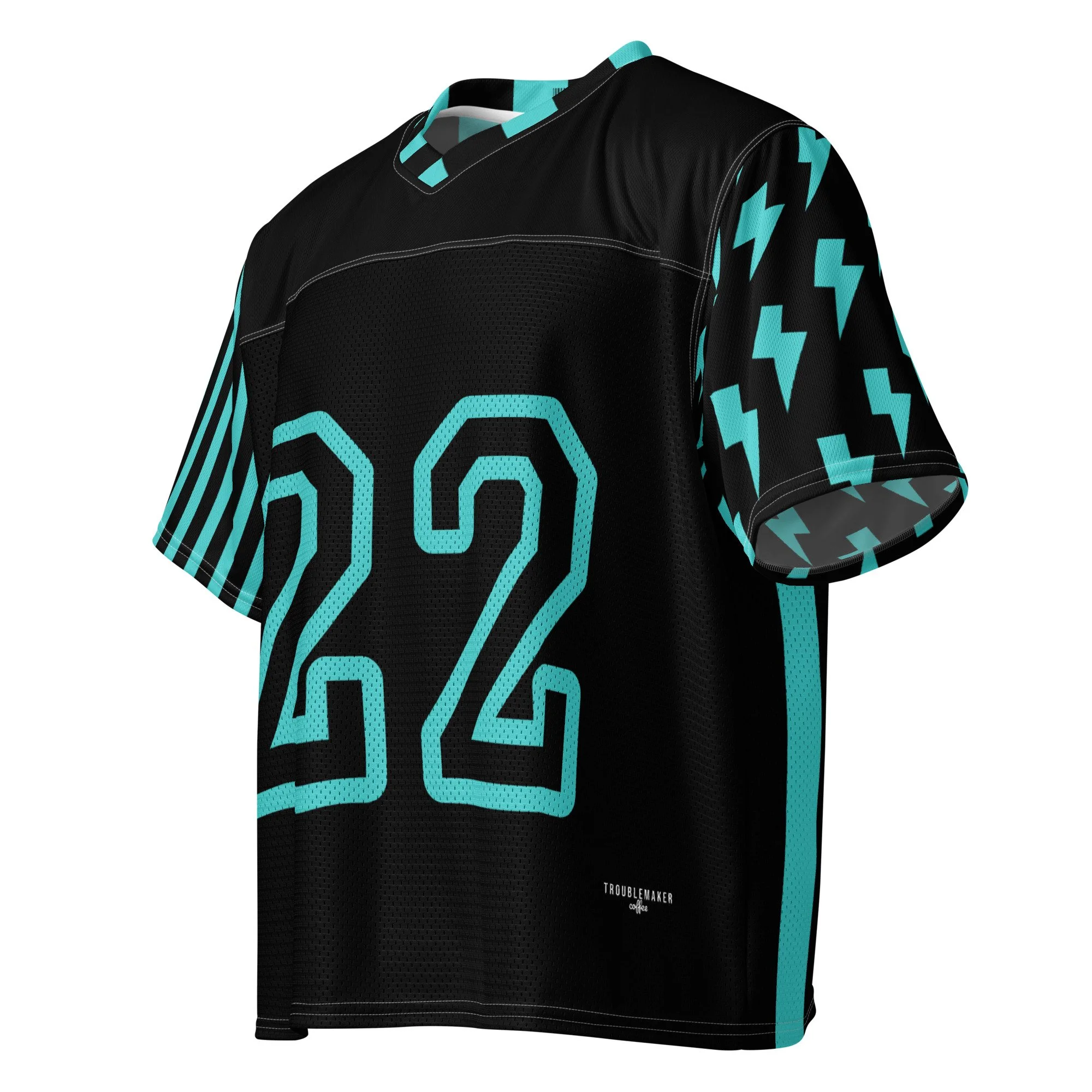 STORE › Troublemaker | Boxy Jersey Image 1 of 6 Image 2 of 6 Image 3 of 6 Image 4 of 6 Image 5 of 6 Image 6 of 6 Troublemaker | Boxy Jersey $60.00 A breathable football jersey with silky top fabric and heavy mesh bottom. Moisture-wicking, 2-way stretch, and relaxed fit. • 2 premium fabrics – silky stretch top, breathable mesh bottom • Moisture-wicking and durable • Relaxed fit for athletes and street style Size: 2XS XS S M L XL 2XL 3XL 4XL 5XL 6XL Add To Cart Added! A breathable football jersey with silky top fabric and heavy mesh bottom. Moisture-wicking, 2-way stretch, and relaxed fit. • 2 premium fabrics – silky stretch top, breathable mesh bottom • Moisture-wicking and durable • Relaxed fit for athletes and street style