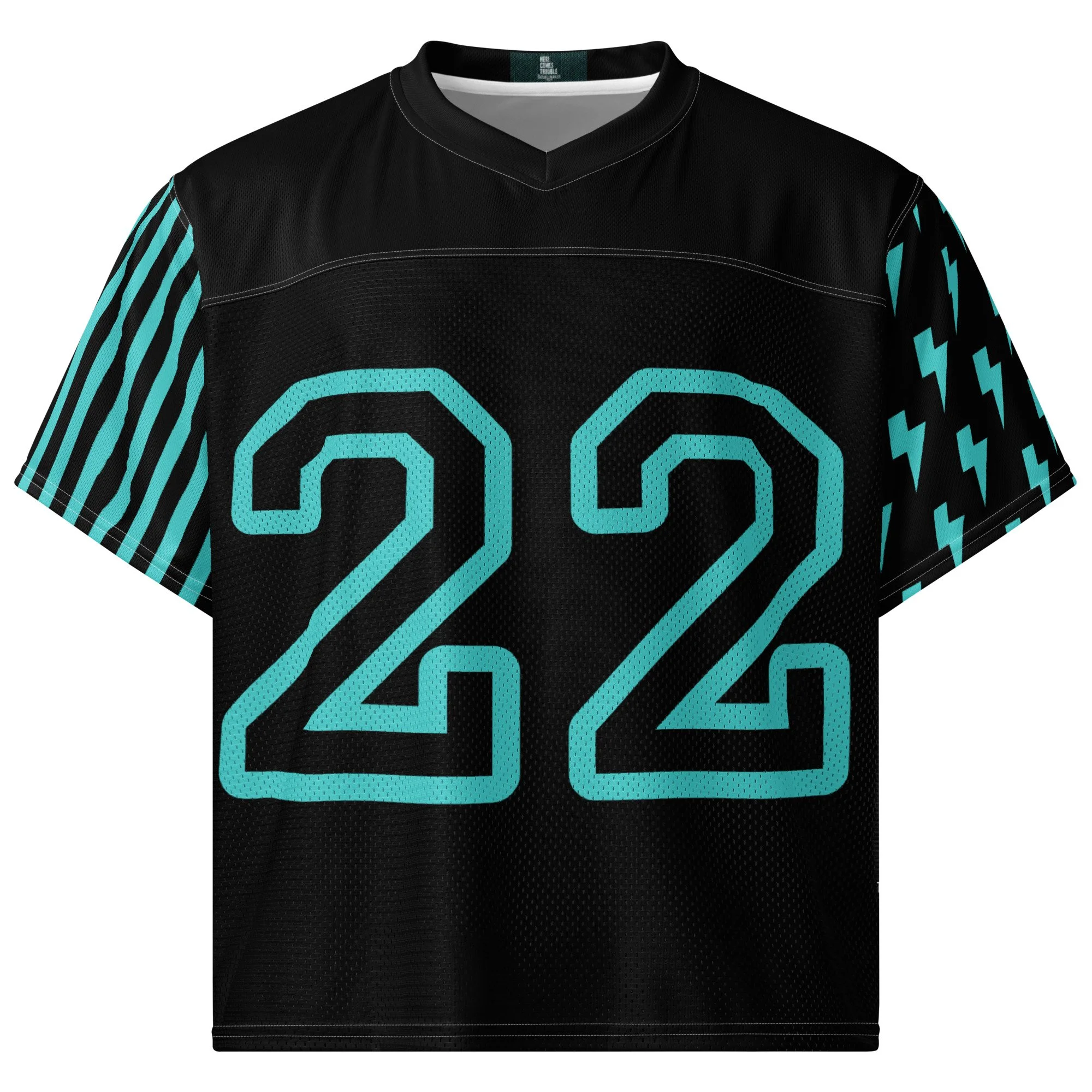 STORE › Troublemaker | Boxy Jersey Black Image 1 of 5 Image 2 of 5 Image 3 of 5 Image 4 of 5 Image 5 of 5 Troublemaker | Boxy Jersey Black $60.00 A breathable football jersey with silky top fabric and heavy mesh bottom. Moisture-wicking, 2-way stretch, and relaxed fit. • 2 premium fabrics – silky stretch top, breathable mesh bottom • Moisture-wicking and durable • Relaxed fit for athletes and street style Size: 2XS XS S M L XL 2XL 3XL 4XL 5XL 6XL Add To Cart Added! A breathable football jersey with silky top fabric and heavy mesh bottom. Moisture-wicking, 2-way stretch, and relaxed fit. • 2 premium fabrics – silky stretch top, breathable mesh bottom • Moisture-wicking and durable • Relaxed fit for athletes and street style